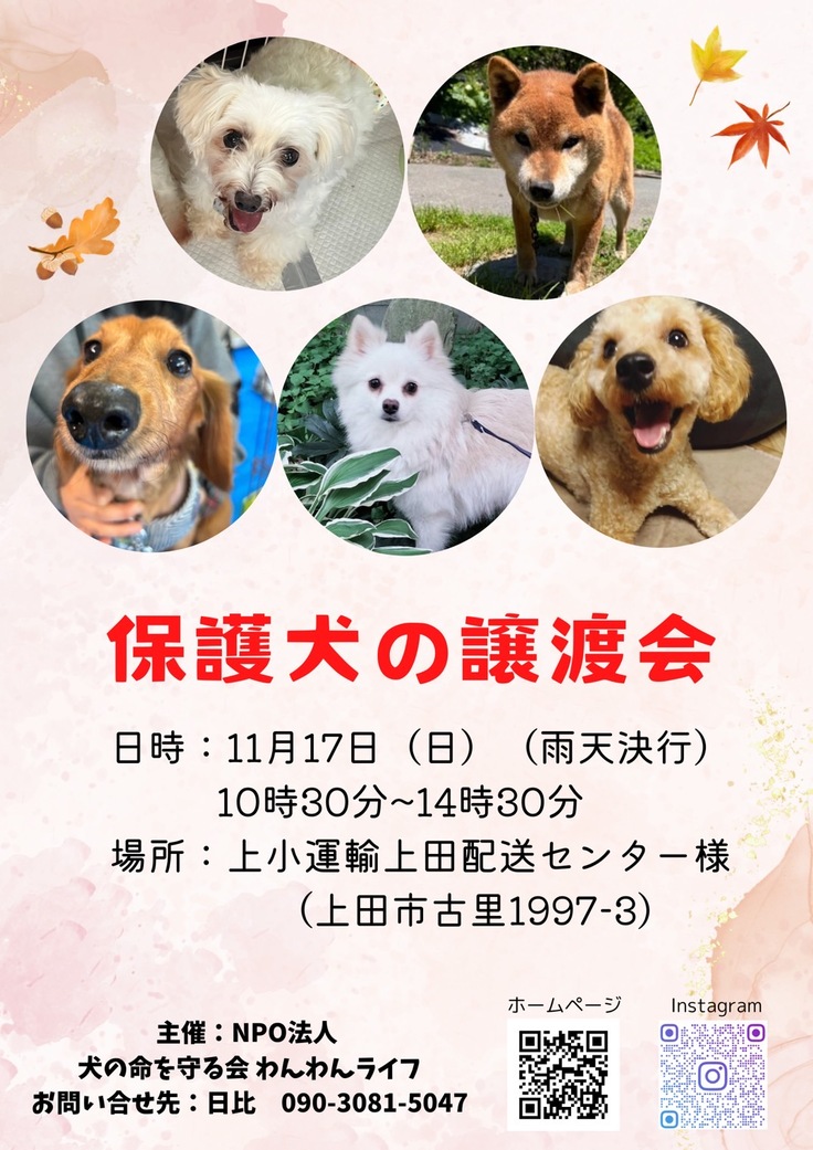 信州上田の犬の命を守る会・わんわんライフです。
