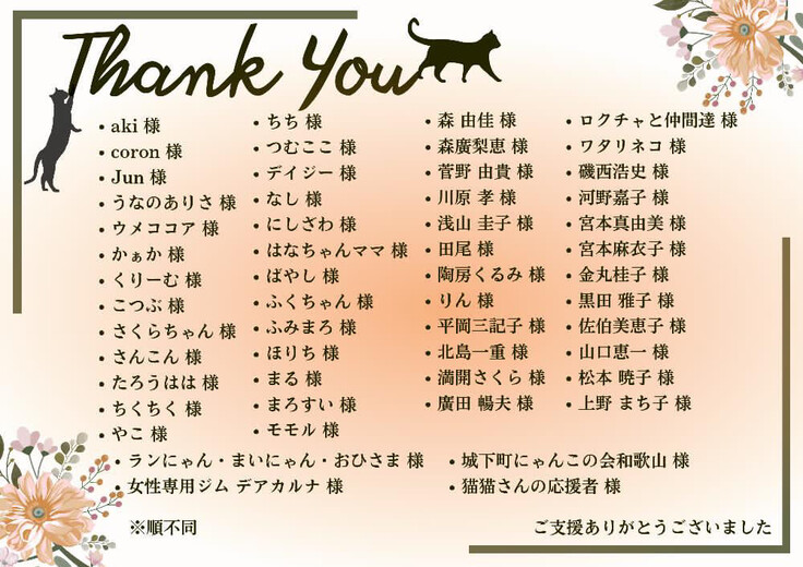 グッズで応援|支援者ボードへのお名前掲載+猫ちゃんのお写真