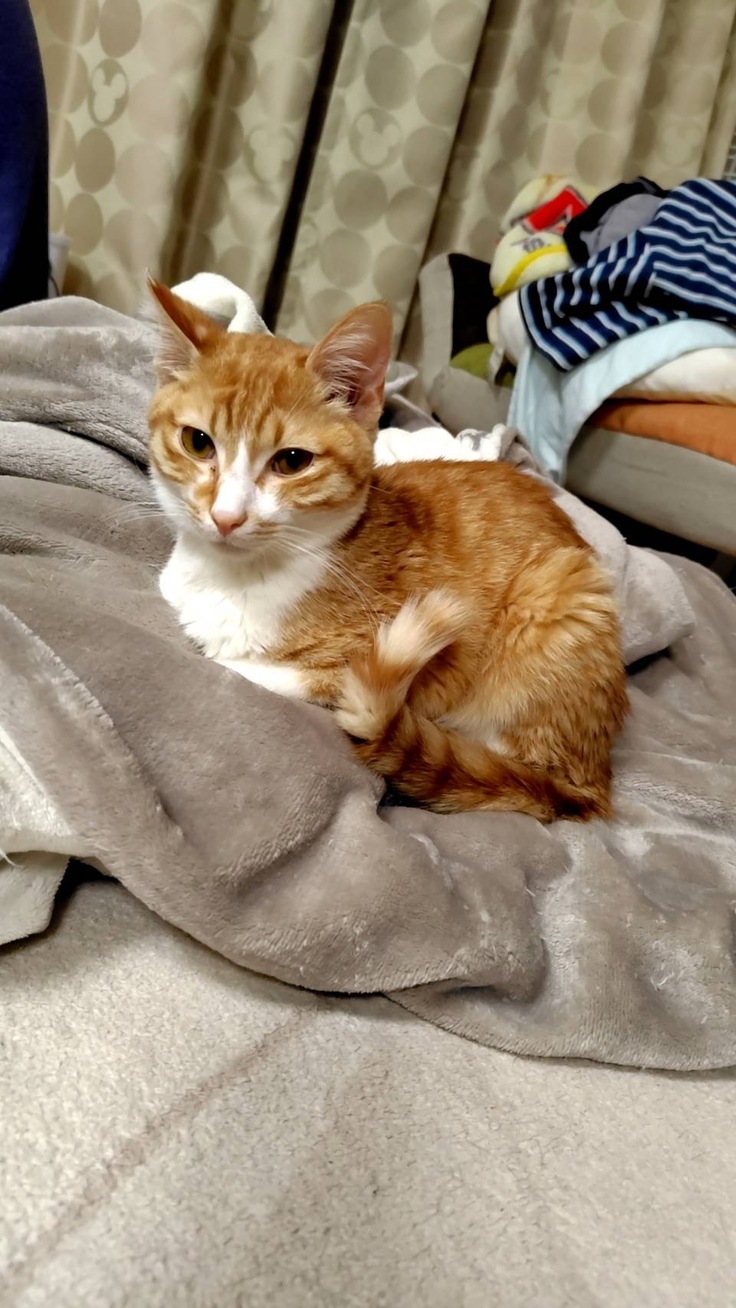 麦太郎くん(茶白オス猫、10月ワクチン接種済み、AIDS白血病陰性)預かりさん宅にて、FIP発症してしまいました。