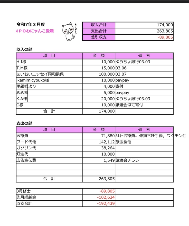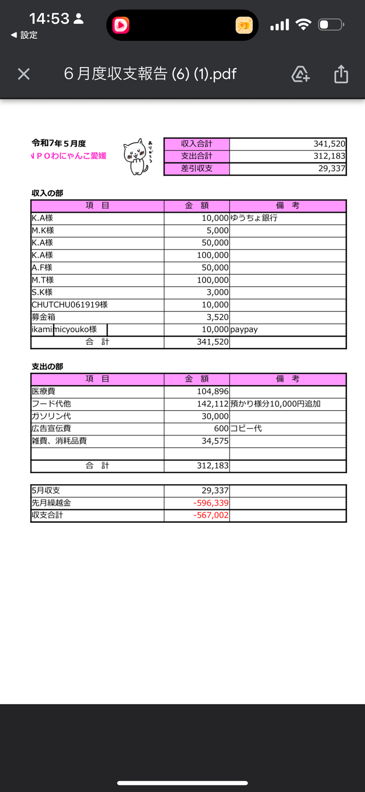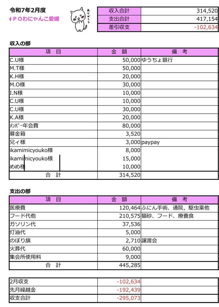 2025.02月~2025.06月までの収支報告書が仕上がりました。