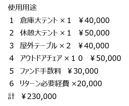 その際、コロナ禍のために初期資金が無く、地域の若い人たちのボランティアが快適に作業ができて、交流を深められる環境と廃業して倉庫等の施設が撤去されているため必要な一時施設を準備する支援を募りたいと思います。