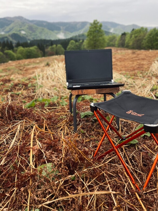 ワラビ園でPC作業、ここまでくるとテレワークの粋を越してしまってる気が・・
