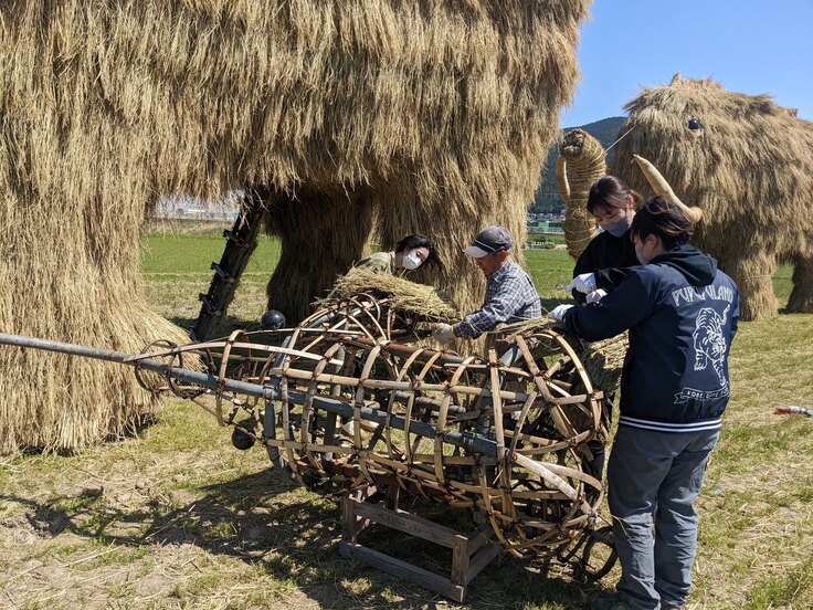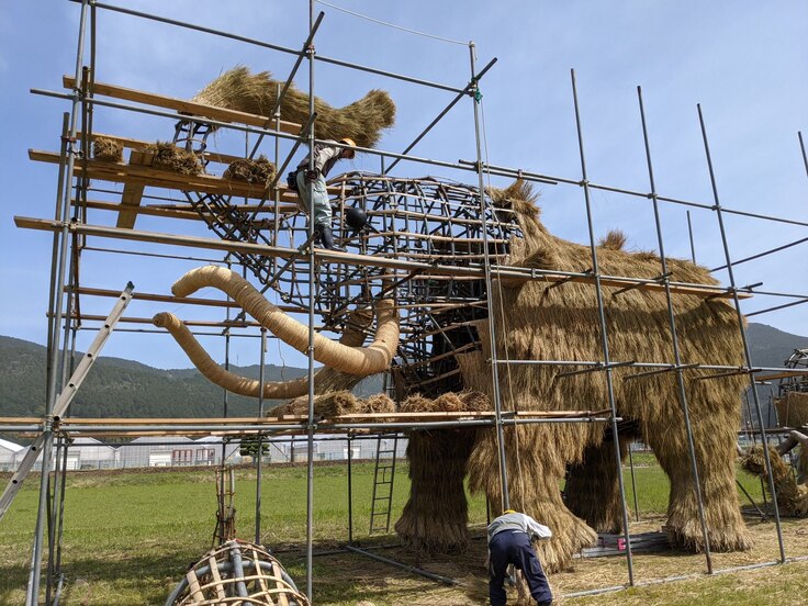 わらマンモスを作るのには、地元の人のかなりの熱意と努力があり、出来上がっています。