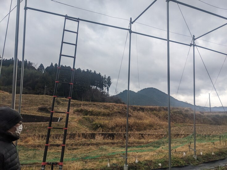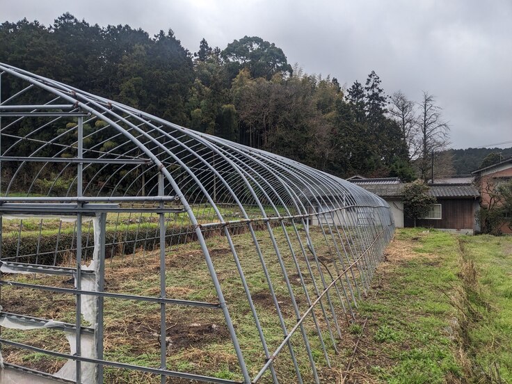 ホップの栽培場所は、僕の住んでいる地区で、今は使われていない骨組みビニールハウスの場所です。