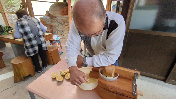 この器具すごいですよね!手作りで、柚子を絞るだけに作った器具らしいです。(宇都宮さん作)