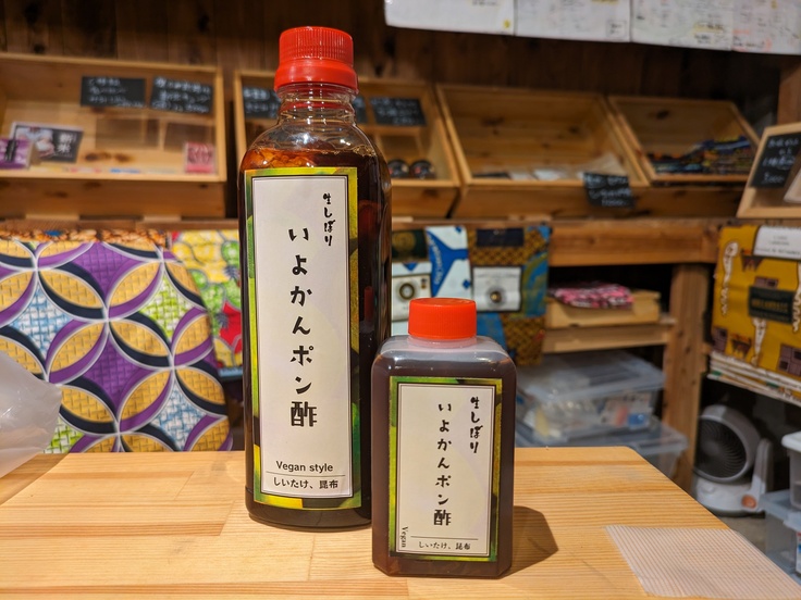 材料は、いよかん果汁、醤油、カツオぶしに昆布のみ。
