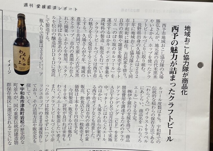 伊予銀行のプレスリリースをきっかけに、愛媛経済レポートのご担当者様から取材いただき、今回のクラフトビールを記事にしていただきました!
