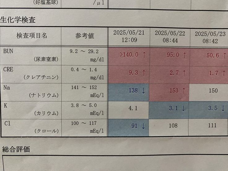 血液検査でクレアチニン(排出されるべき老廃物)が