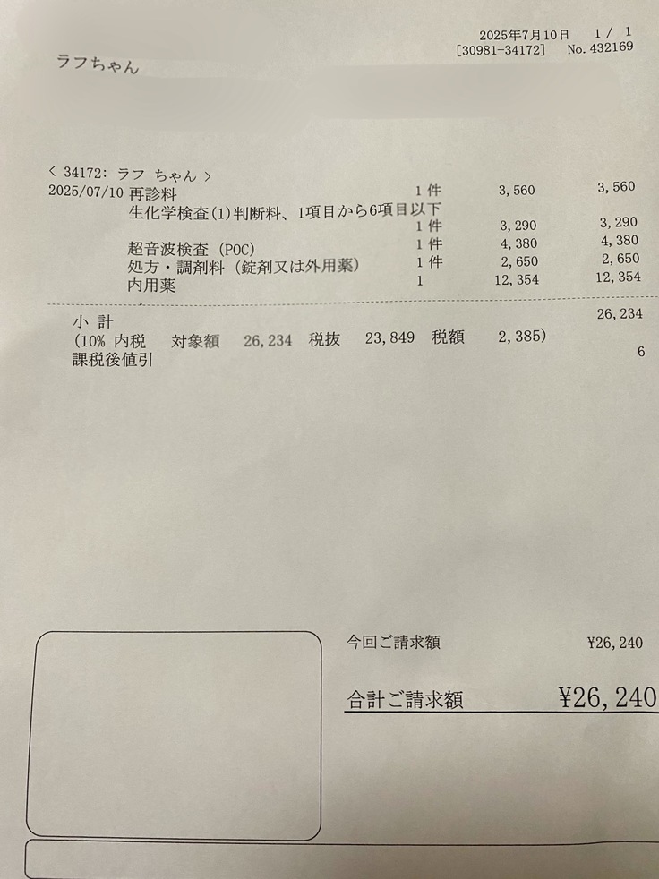 本当は、できることならもっと早くに手術をお願いしたかったのですが、手術チームの7,8月の予約が既にいっぱいで、かつ今のラフの状態が投薬で安定しているとの事で、このまま順番を待つことになりました。