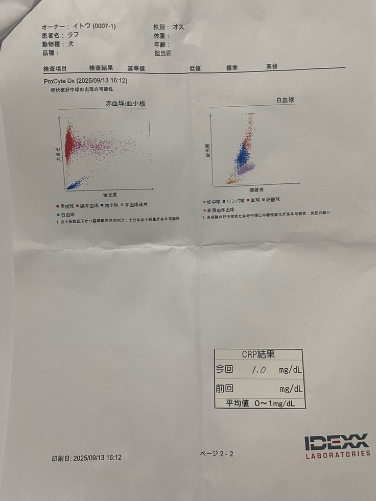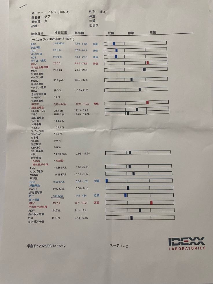 昨日の検査では、少しですが貧血も回復の兆しが見られ、