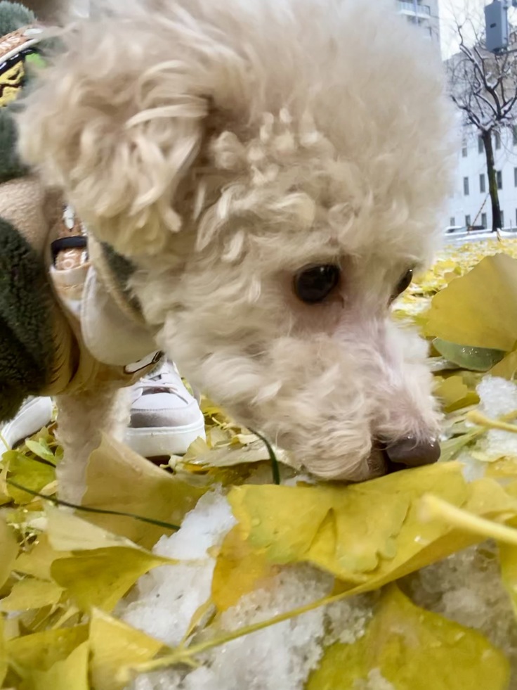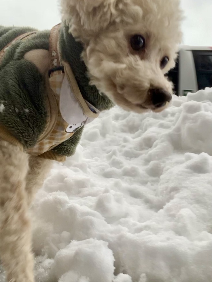 久しぶりの雪道散歩はラフにとっても新鮮だったようで、