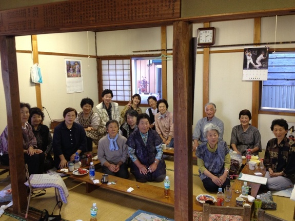 (平均年齢75歳の"若妻会”の会合での集合写真)