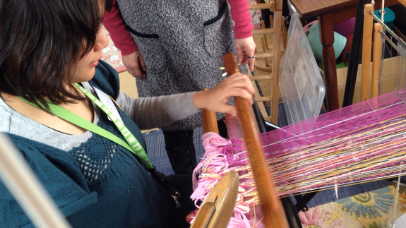 ―村内のおかあさん方が作った「さをり織り」のグッズを想定しています。