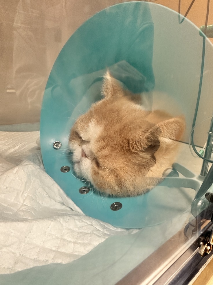 手術を終えたわさびは、麻酔からの覚醒が悪く