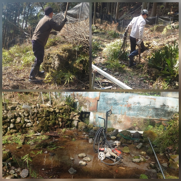 最上段の一番上手に溜めを作って濁り水を排水できるようにする為の工事と沢の横からの漏れ止め工事とちょっとした石垣の石積み工事は必要ですが結構早いうちに形になりそうです。
