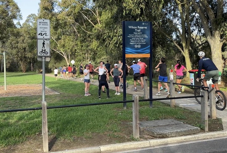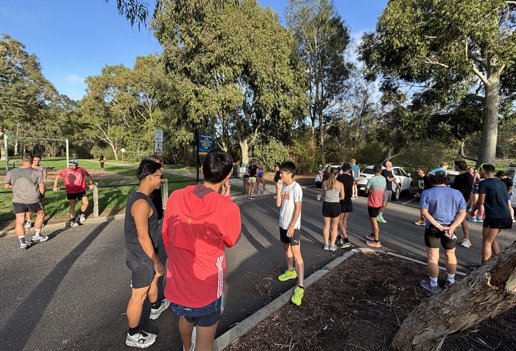 午前中にメルボルンTCのロングランに山口、鈴木の2名が参加。館澤選手の車に同乗させてもらい、15km離れた場所に移動。集合場所にはメルボルンTCのメンバー以外にもたくさんのランナーが集まって来てました。
