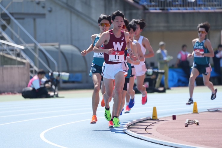 5000mには、八千代松陰高校から入学した鈴木琉胤が出場しました。6m近い強風が吹くなか、序盤から集団の先頭で、他大学のエースランナーを引っ張りました。最後のスパートで競り負け、惜しくも2位でしたが、これまでのタイムや今回のレース内容が評価され、ワールドユニバーシティゲームズ日本代表に内定しました。