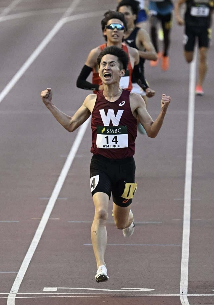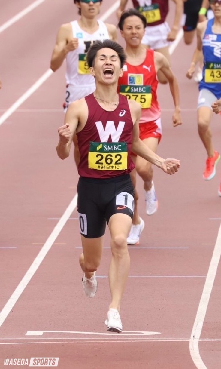 スタート直後に吉倉が先頭に立つと、2周目に入ったところで山口が代わって先頭に立ちペースアップ。その後、400mから1200mまでの800mを1分53秒というハイペースでカバーして後続を一気に引き離して独走体制に。そしてその差を保ったままゴールを駆け抜け、3分40秒46の自己新記録(早稲田新記録)で優勝を果たしました。