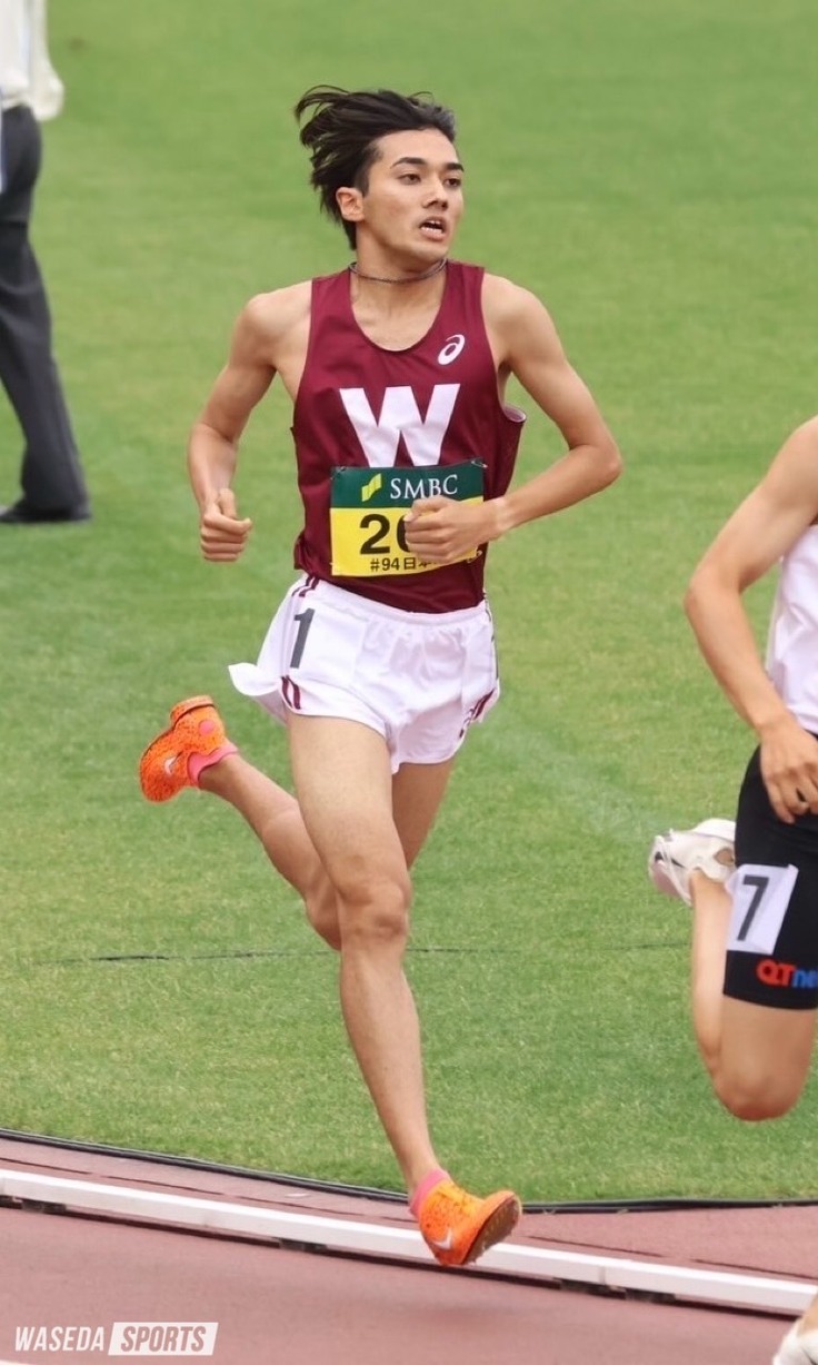 山口は、対校戦争いで1人で16点を稼ぐ大活躍で、早稲田大学の男子トラック優勝に貢献しました。(総合では早稲田大学は男子3位、女子10位でした)