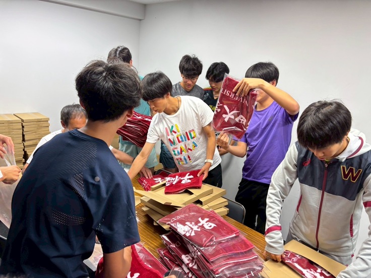 3万円以上の寄付をいただいた方への返礼品は、秋冬用ウェア以外のグッズは梱包が終わり、順次発送しています。まだの方も、もう少しで届きますので楽しみにお待ちください。