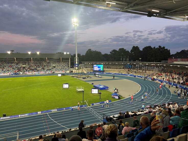 工藤の優勝のその興奮も醒めらないまま、イブニングセッションで行われる佐々木の3000mSC決勝の応援のため競技場へ。