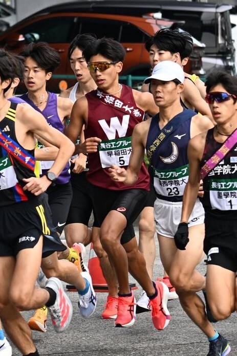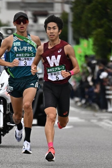 1区の間瀬田純平(4年)が区間賞と同タイムの2位で最高のスタートを切ると、2区の鈴木琉胤(1年)も他校のエースたちと激しい先頭争いをしながら、先頭とは3秒差の4位でタスキを繋ぎました。