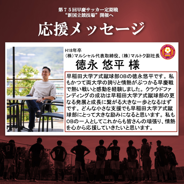 クラウドファンディング実施にあたり、ア式蹴球部OBの皆様から応援メッセージをいただいております🔥