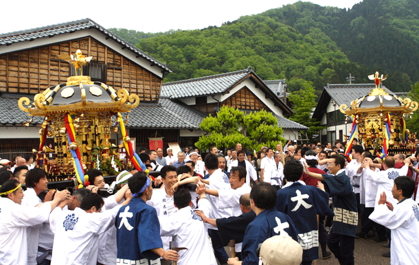 どの里宮でも神様を少しでも長くお留めしようとする里人と先を急ぐ駕輿丁衆との間で壮絶な神輿の争奪戦が繰り広げられます。