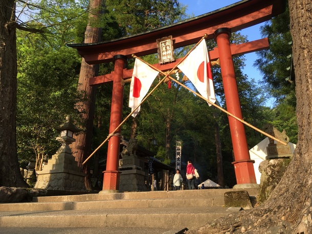 ・神社の前身である大瀧児権現(大瀧寺)創建の由来とも言える、白山の三山信仰をモチーフにした奥の院(上宮)の山並み