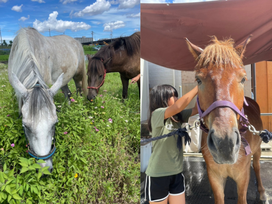 大阪にある私たちの狭い施設でも、周辺の農家の方々のご協力で放牧場を拡大することができ、馬糞も肥料として農作物の生育に役立てていただくことができています。