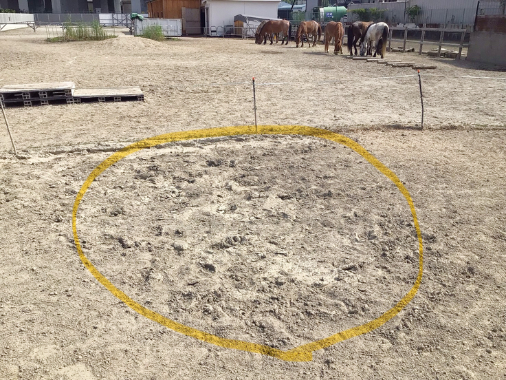 屋外にある馬場は、雨風による土壌の流出や浸食、また馬たちの蹄によって、路面が荒れやすくなります。これにより、馬の足への負担が増えたり、お客様が不安定な状態で乗馬することになったりと、さまざまなリスクが高まるため、新たな砂の補充が必要です。