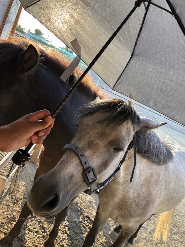 日焼けすると嫌だから日傘をお願いしたんだ。