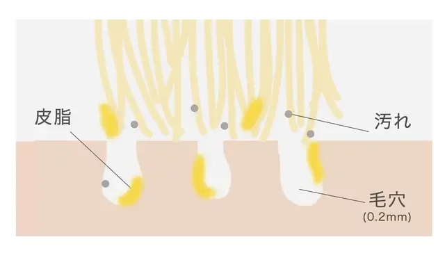 通常、毛穴の大きさは約0.2mmと言われています。綿花の繊維は0.012~0.028mm。