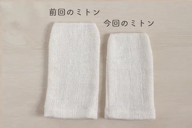 前回のプロジェクトを通して、わたばなを使っていただいたお客様から「やっといい商品に出会えて嬉しい」というお声とともに、「ミトンが好きだけど大きくて脱げてしまいそう。もう少し小さいサイズを作っていただけませんか」というお声や、