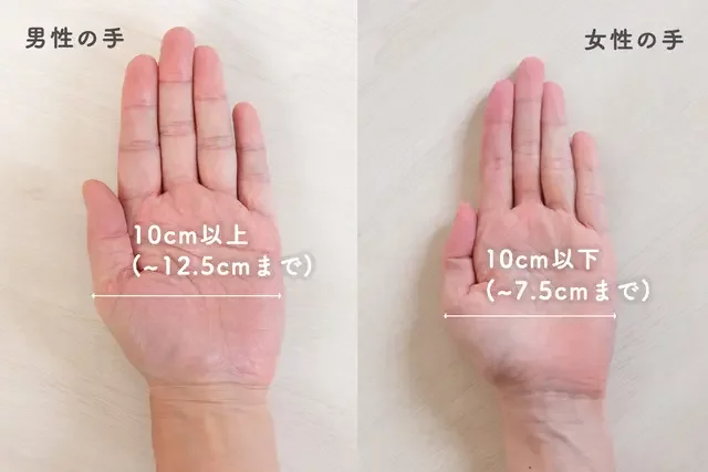人によって、手の厚みなども異なりますが、上記サイズを目安にしていただけるとわかりやすいです。