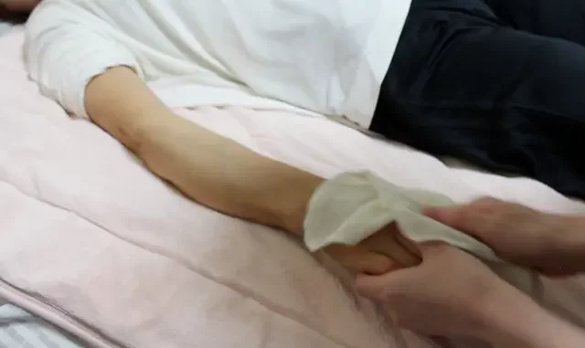 「これまで、私の右手上手く曲がらなかったのですが、ミトンを使うようになってから、なんと曲がる様になっています!ミトンを使って指を動かしていた効果かなと思っています。」