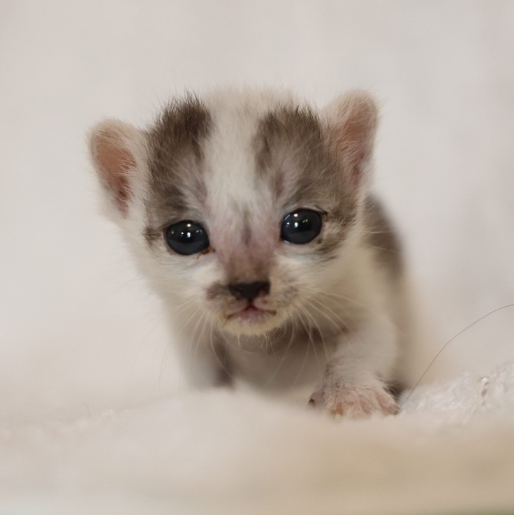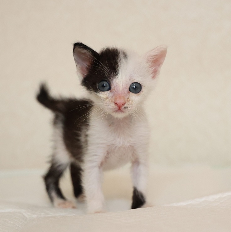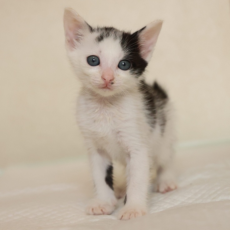 ・顔に向かって左側がハチワレ模様、ホクロ模様あり
