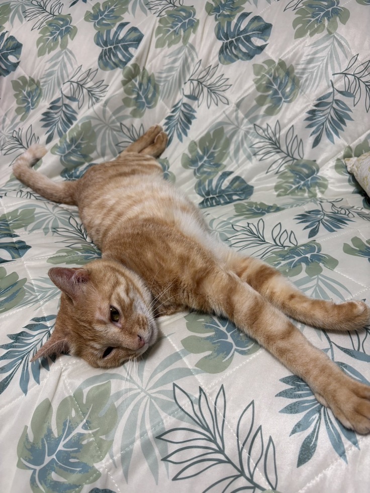 まだ子猫だったお見合い会の時、茶トラの男の子を探されていた里親さまに、茶尾くんは飛び跳ねておもちゃで遊んでアピール出来たのですが、美々ちゃんは怖がって隠れてまわっていて…