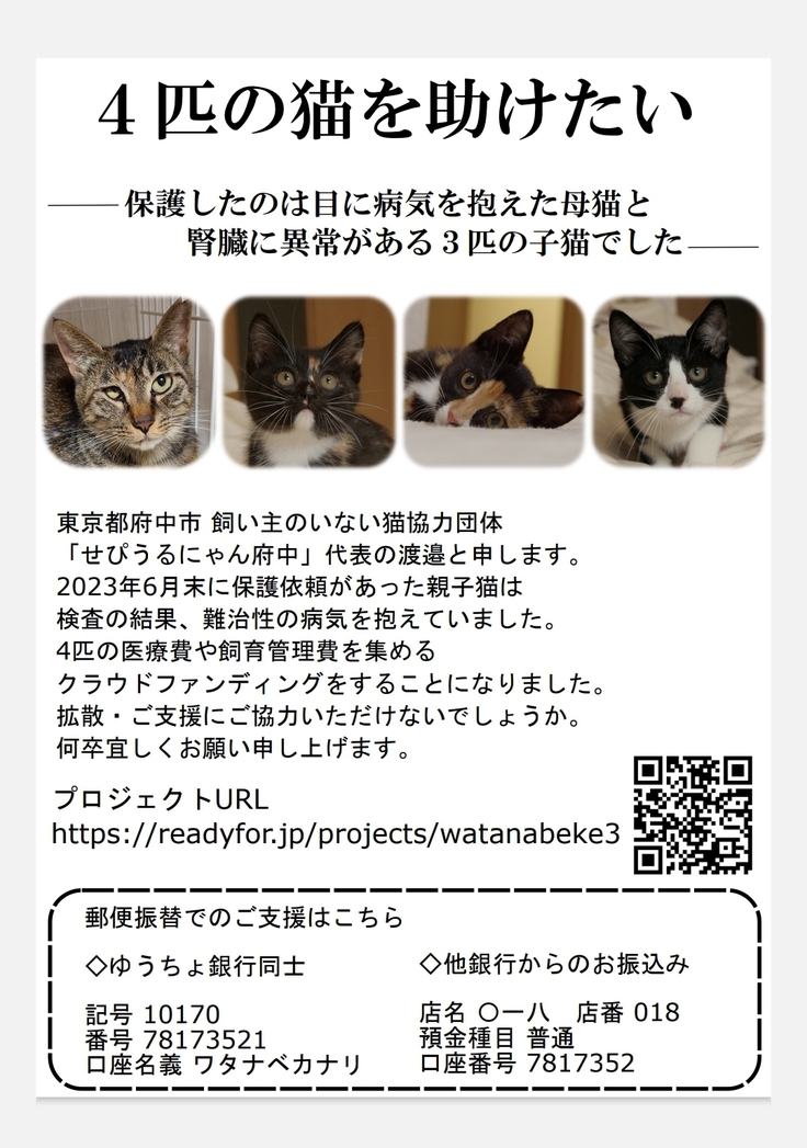 なんとしてもこのプロジェクトを成功させて、4匹を幸せにしたいと思っております。