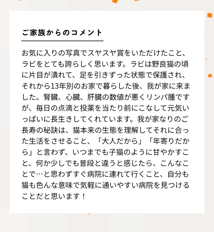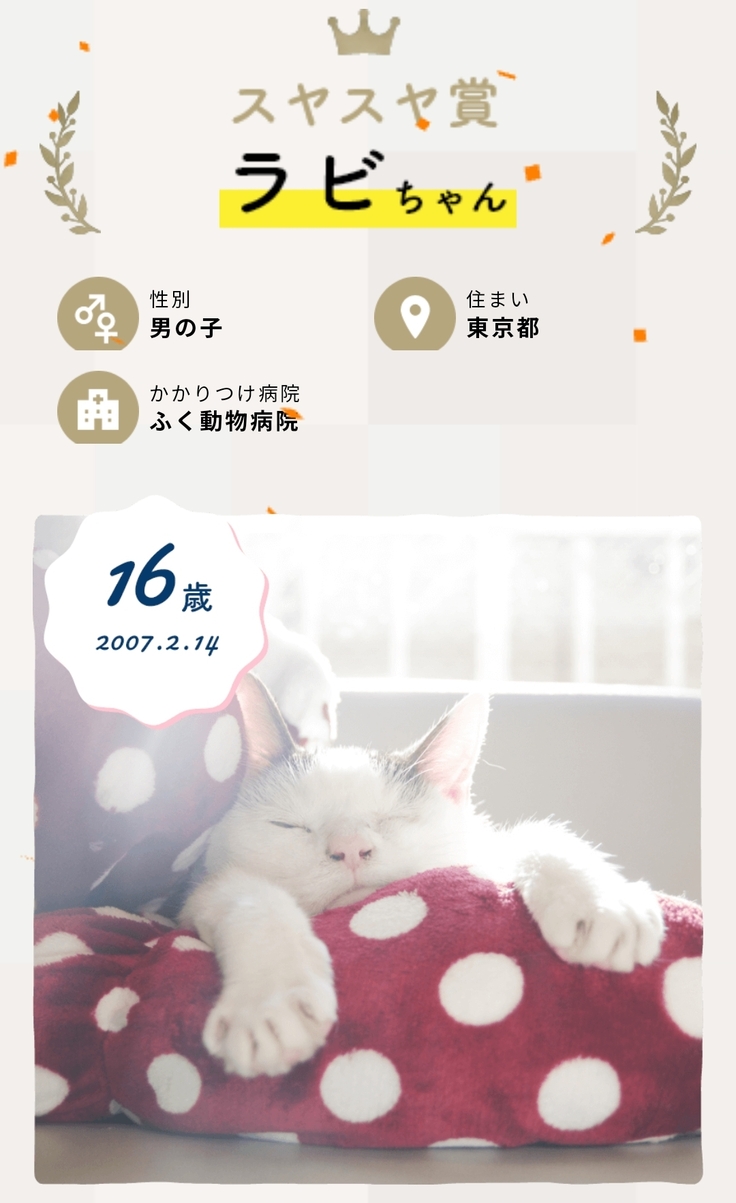 そして、ご長寿ペットフォトコンテストでラビの写真が「スヤスヤ賞」を受賞しました!