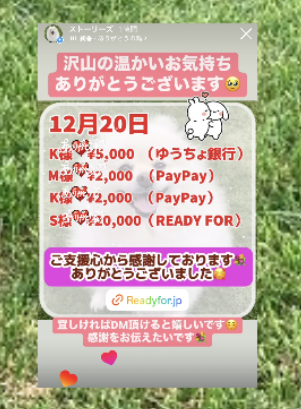 報告方法は、READY FORの活動報告欄・インスタにてさせていただきます。