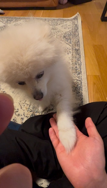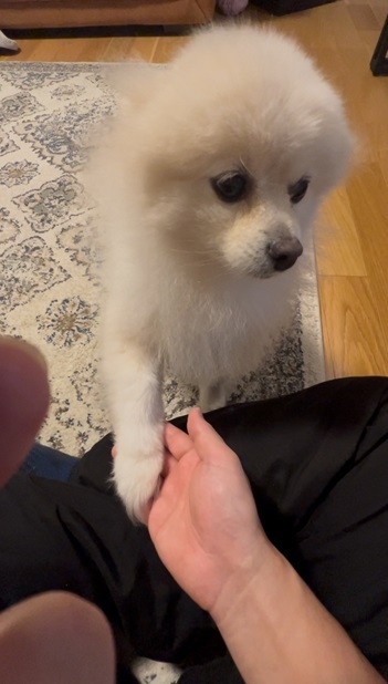一緒に遊びだすとウサギのように跳ねるので向かい合って大人しく遊びます。
