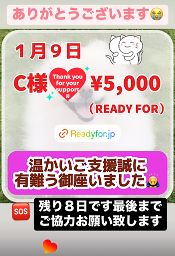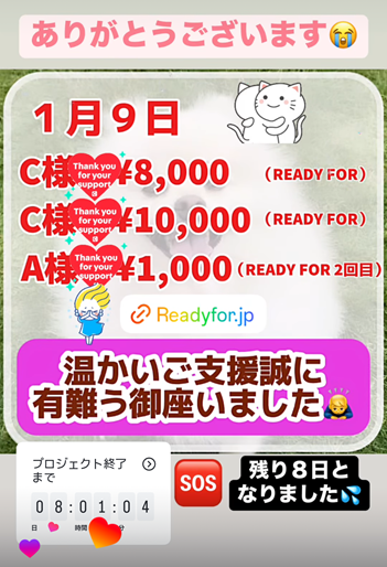 報告方法は、READY FORの活動報告欄・インスタにてさせていただきます。