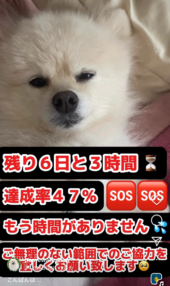 大変心苦しいのですが、日々の治療費など稼ぐことでリターンにかけられる資金がない為、写真付き感謝のメールと活動報告のみでご理解いただけると幸いです。