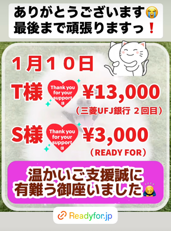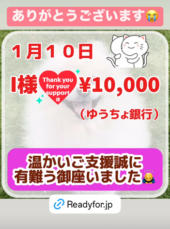 報告方法は、READY FORの活動報告欄・インスタにてさせていただきます。