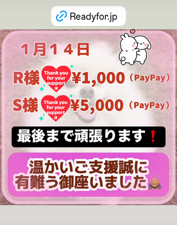 報告方法は、READY FORの活動報告欄・インスタにてさせていただきます。