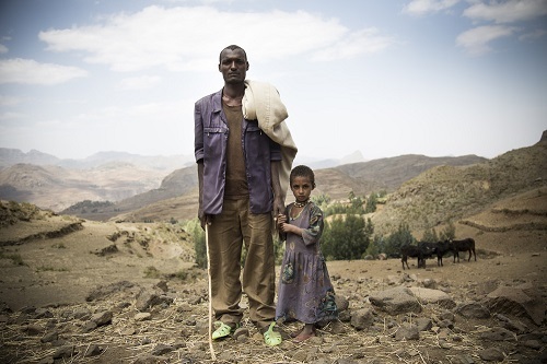 アディ・シバット村で家畜の世話をするカサさん父娘(WaterAid/ Guilhem Alandry )
