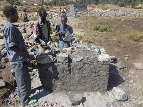 エチオピアのアディ・シバット村では今日も着々と建設作業が進んでいます。