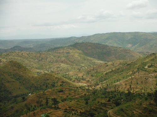 段々になった畑が広がるコンソ郡の丘陵地域(WaterAid/ Kaoru Takahashi)