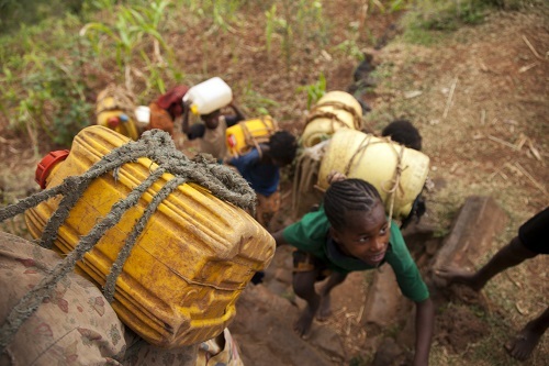 水くみから帰る道中、がけを登る子どもたち(WaterAid/ Anna Kari)